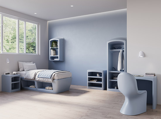 Modulares, schmales Design ermöglich ein kompaktes und individuelles Verstauen von Kleidung und anderen persönlichen Gegenständen in anspruchsvollen Umgebungen.